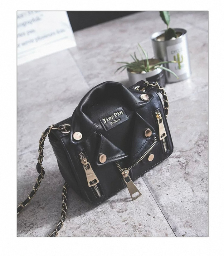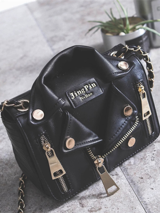 🖤🧥کیف فانتزی طرح کاپشن چرم مشکی – استایلی جسور، الهامگرفته از مد خیابانی