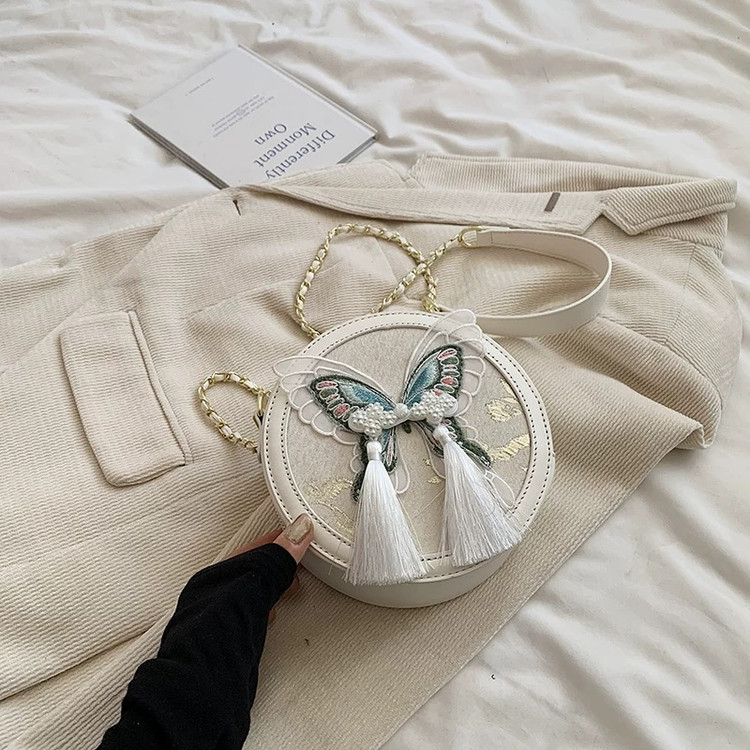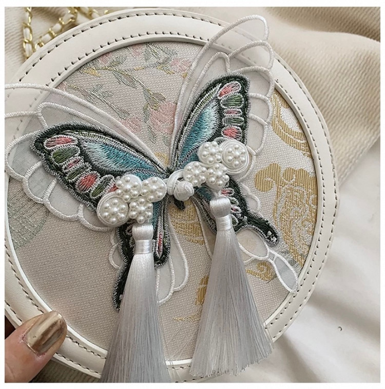 کیف مجلسی گرد زنانه با طرح پروانه گلدوزی شده/شیک و خاص