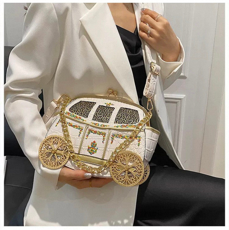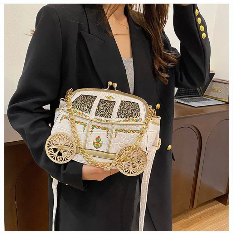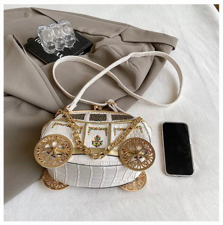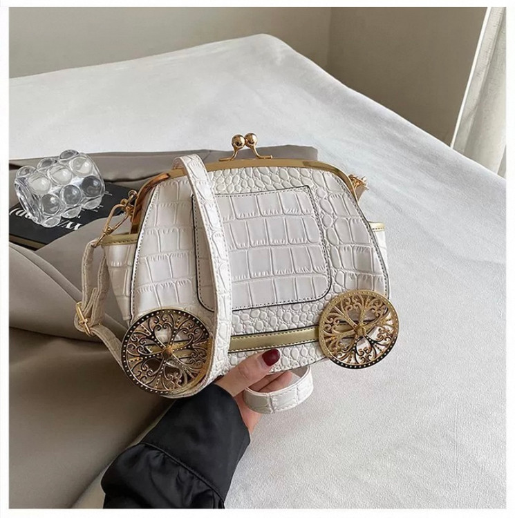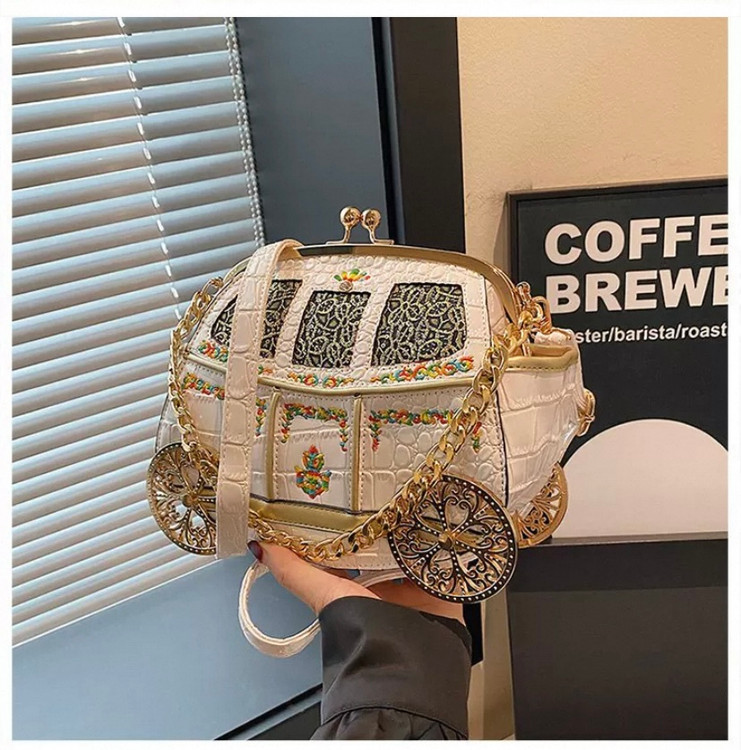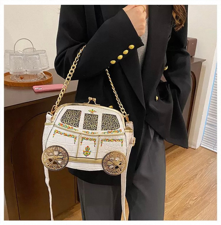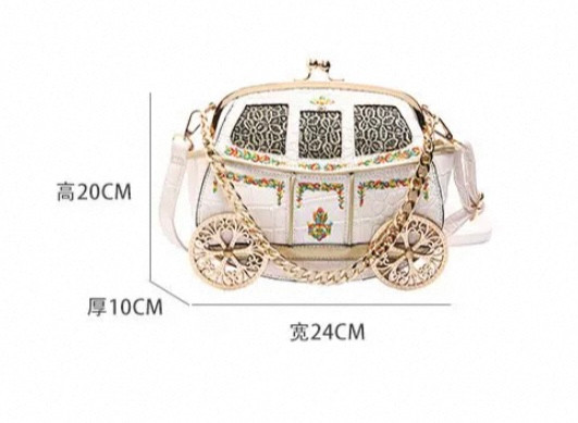 با این کیف شگفتانگیز، انگار تکهای از دنیای افسانهای سیندرلا رو با خودت همراه داری! طراحی خاص و خیرهکنندهی این کیف به شکل کالسکه پرزرقوبرق سیندرلا، با چرخهای تزیینی فلزی طلایی، اون رو به یک اکسسوری رؤیایی و منحصربهفرد تبدیل کرده.