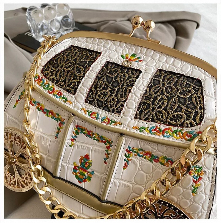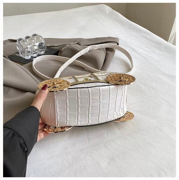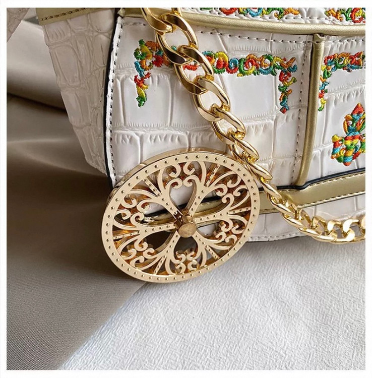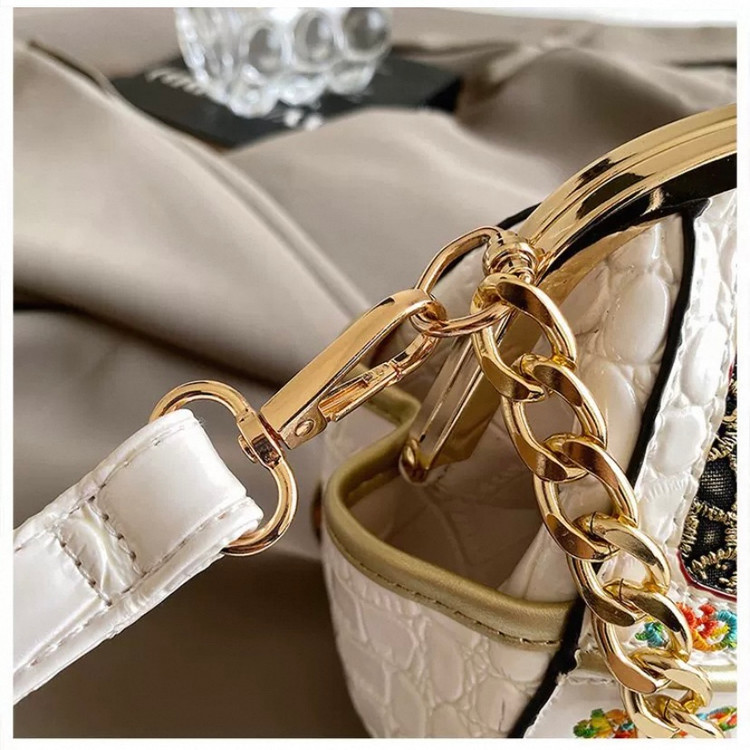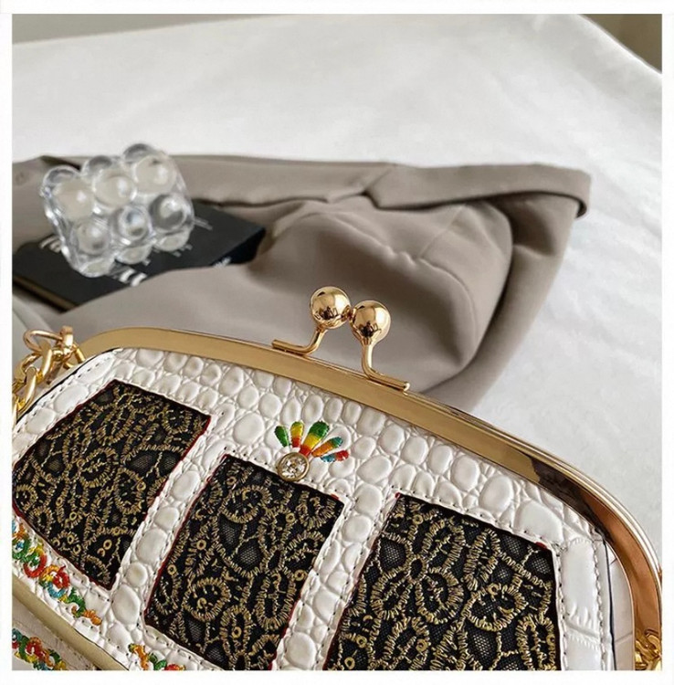 • جزئیات هنری و فاخر: استفاده از تزئینات فلزی و پرداخت خاص، کیف رو به یک اثر هنری کوچک تبدیل کرده.
