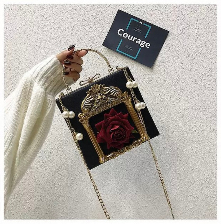 کیف دستی لوکس زنانه /کیف مشکی با گل رز سه بعدی