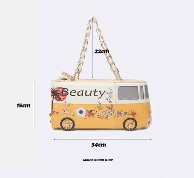 این کیف جذاب و خاصی که در تصویر میبینید، یک کیف دوشی فانتزی به شکل مینیون کلاسیک (Volkswagen Style) هست که طراحی اون الهام گرفته از ونهای قدیمی دهه ۶۰ میلادیه. این نوع کیفها بیشتر به عنوان اکسسوری خاص، فانتزی و مناسب سنین نوجوان و جوان یا حتی برای هدیه استفاده میشن.