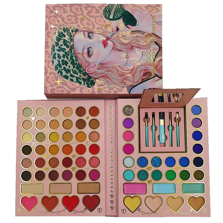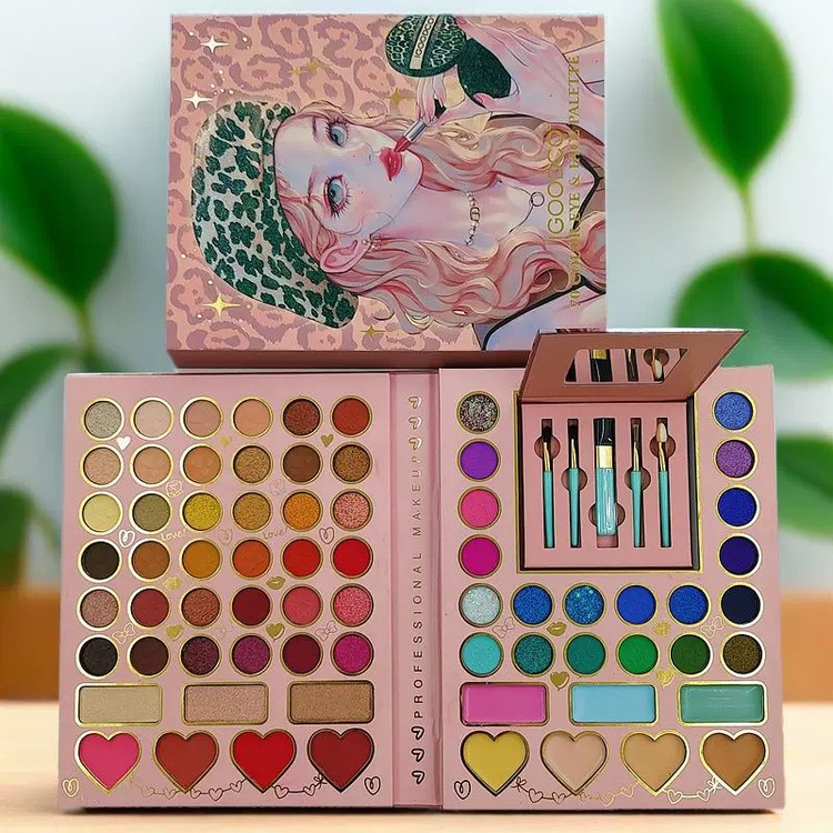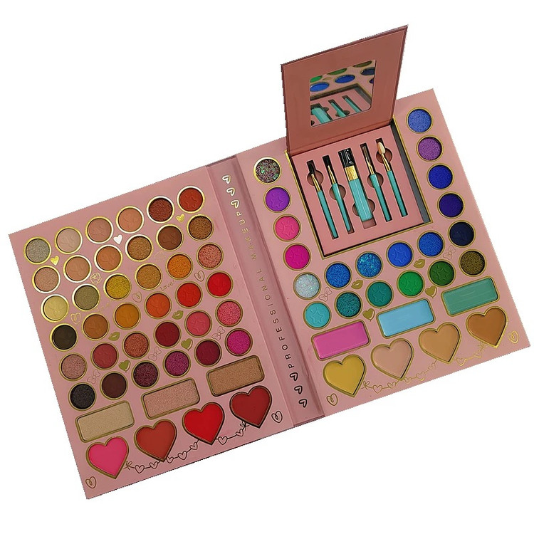 پالت آرایشی حرفه ای با بیش از 60 رنگ متنوع - شامل سایه ، رژ، هایلایتر و ابزار حرفه ای