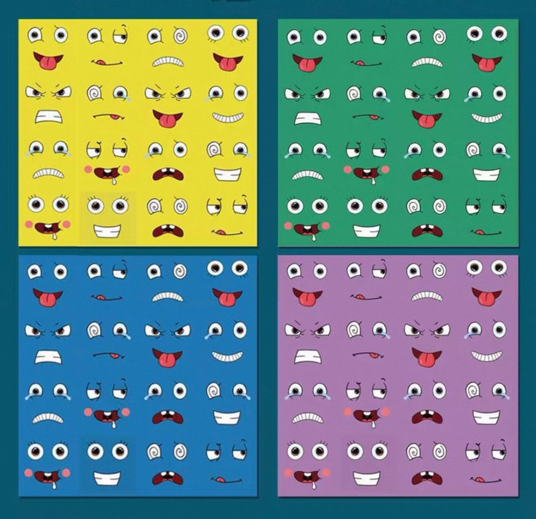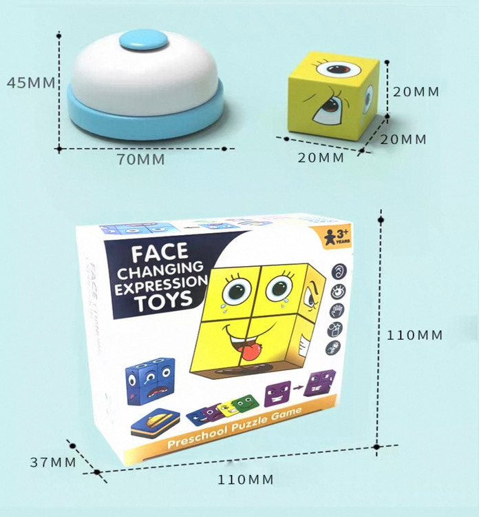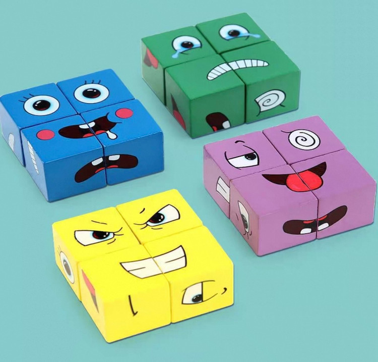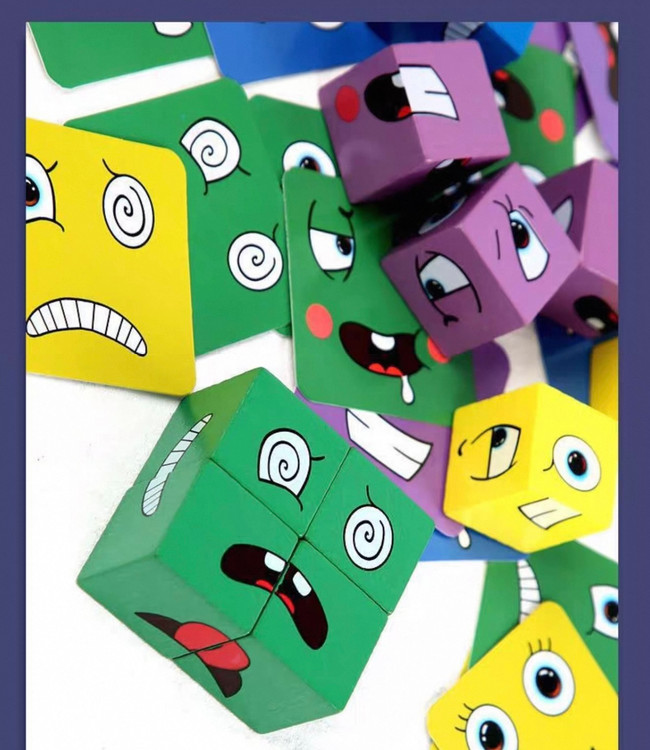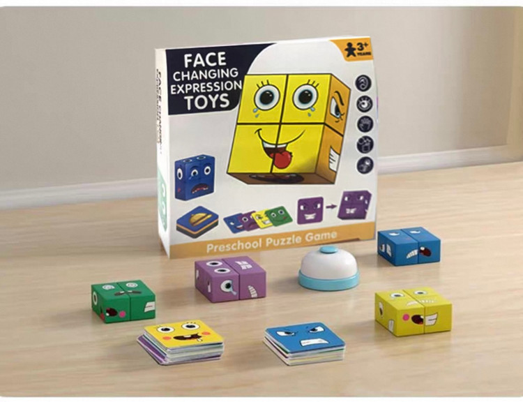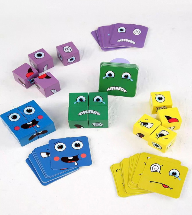 روش بازی: 1. همه بازیکنها هر کدوم یک رنگ مکعب انتخاب میکنن (مثلاً یکی زرد، یکی آبی و …). 2. کارتها رو بر بزن و یکی از اونها رو رو کن وسط میز. 3. همه بازیکنها بهصورت همزمان تلاش میکنن با چرخوندن مکعبهاشون، چهرهی روی کارت رو بسازن. 4. اولین نفری که درست ساخت، زنگ رو فشار میده