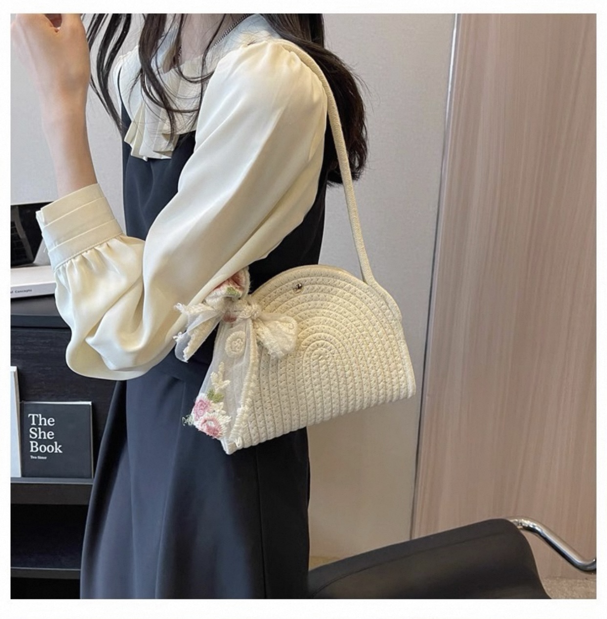 کیف دستی دستباف دخترانه با بند طنابی/روزانه/شیک/سبک تابستونی